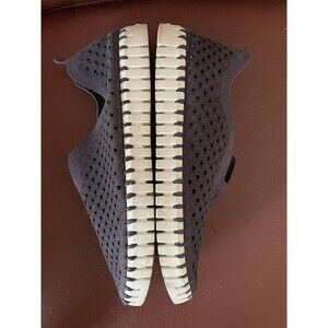 These shoes were worn once or twice and are in excellent condition. They are made from recycled microfiber, recycled stitching, no glue, laser cut pattern, flexible natural rubber sole.