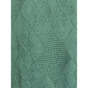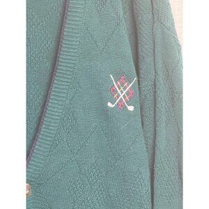 Isle Of Cotton Large Green Cardigan Sweater Embroidered Golf Clubs Made in the USA Grandpa VTG Diamond Textured FLAW