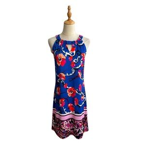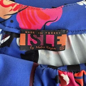 Isle by Melis Kozan Floral Sleeveless Mini Sheath Shift Dress Size XS in very nice used condition. Beautiful, light-weight multi-print dress is super soft with a silky feel. Perfect for travel, no iron needed. Can be dressed up or down. Pretty colors of purple, pink and orange. Made in Turkey.