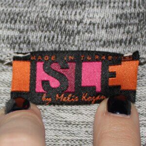Isle by Melis Kozan Heather Gray Cowl Neck Long Sleeve Sweater Dress Women's S, GUC does have 1 small inconspicuous stain (pictured), no holes. Beautiful A-line fit that gathers at the waist to flare out, very flattering. Measurements included in photos.