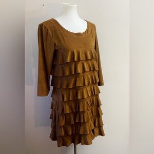 Elevate your wardrobe with this chic brown tiered dress in a size large. Faux suede dress adding texture and style for many occasions.