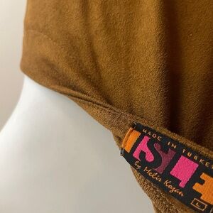 Isle by Meliz Kozan Faux Suede Chic Tiered Long Sleeve Dress Brown Boho Fall
