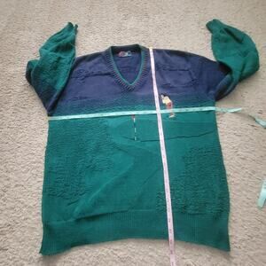 Isle of Cotton Sweater Mens XL Golf Player Embroidered V Neck USA Green Blue