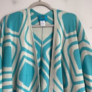 Islefield silk cashmere blend fringe hem knit sweater open front poncho wrap; has a pull but barely noticeable from the right side; SEE PICS