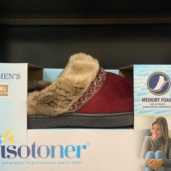 Memory foam isotoner womens slippers. (Some boxes are crushed but the slippers are fine. They came in on a skid)