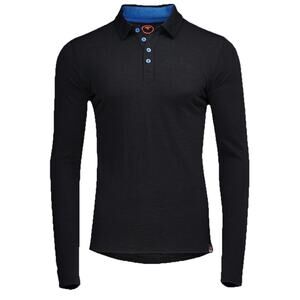Isobaa Men’s Merino 200 Wool Long Sleeve Polo Large black Blue Buttons Pullover