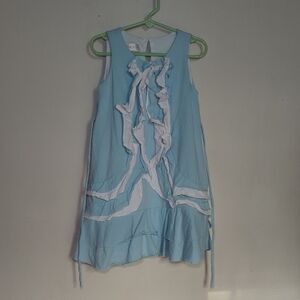 Isobella and Chloe Blue and White Ruffle Sleeveless Cotton Dress Girls Size 6