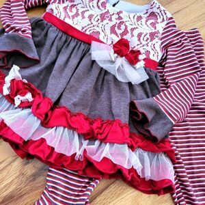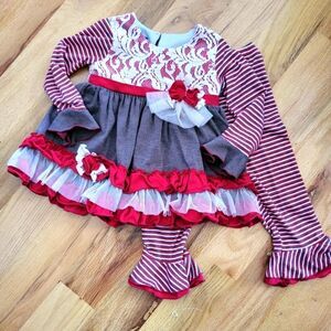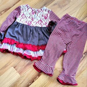 Lovely boutique style Tunic Top with Ruffle flate pants. Soft and comfy jersey knit but stylish too! lots of little design details and frills.