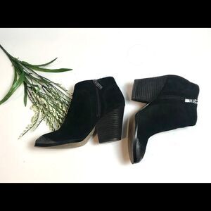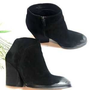 Used in excellent condition (worn once) Isola leather uppers with a dusting of silver metallic at the toe of boots. Side zipper and stacked heel.