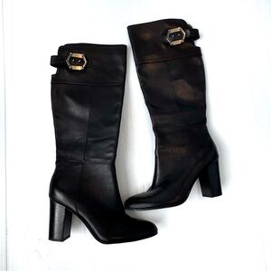 Isola Coralie Black Heeled Boots with Buckle Detail leather