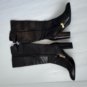 Chic black heeled boots by Isola. Features stylish buckle accents. Perfect for elevating any outfit.