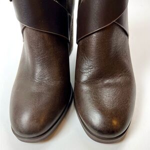 In good used condition Isola Brown Leather Ladora Larka Horse-bit bootie. These boots feature a stacked heel and back zip closure.