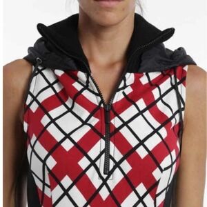 Isola Marras red check plaid sleeveless dress with hood, nwot, size L