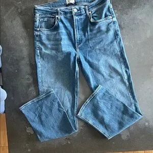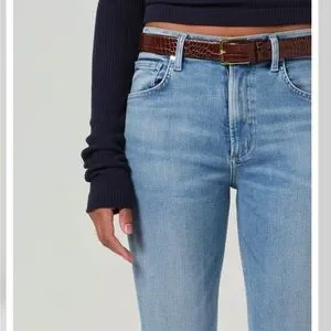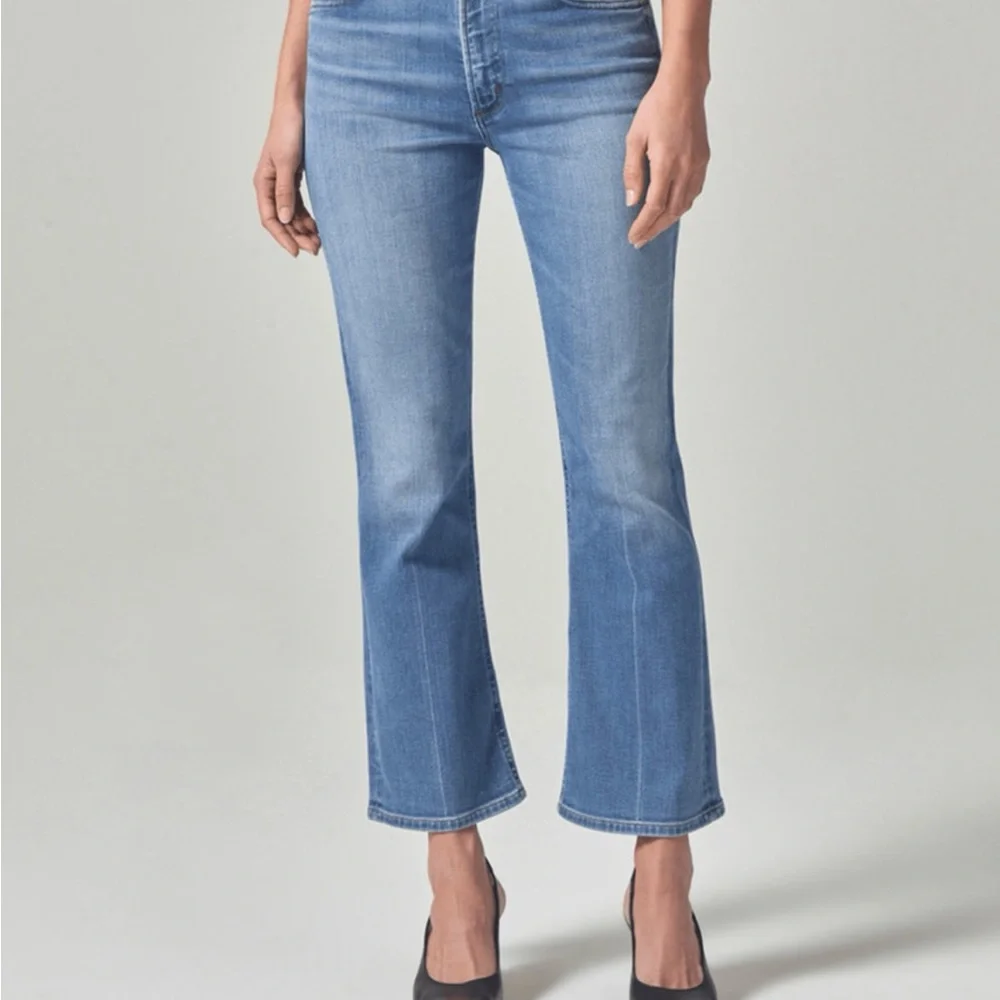 Chic light blue flare jeans. Perfect for a stylish look. Comfortable and versatile.