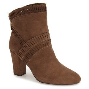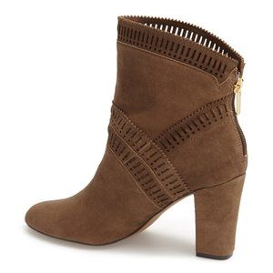 Isola New EVODA Suede Leather Boots Laser Cut Fashion Booties Women's NIB Brown