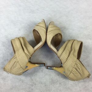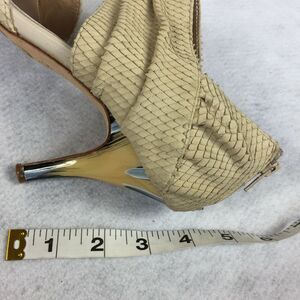 Isola Open Toe High Heels Size 7.5 Womens Cream Ankle Cuff Bootie Snake Textured