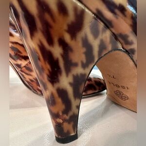 Isola Shoes Heels Cheetah Print Pumps Tan Brown Chain Animal Leopard Print 7.5