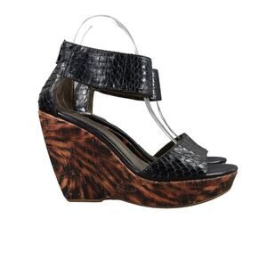 Used Isola Shoes Womens 7 Sandal Wedge Fashion Ankle Strap Platform Oasis Snake Print