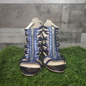 Elevate your style with these stunning strappy blue high heel sandals. Perfect for a night out or a special occasion.