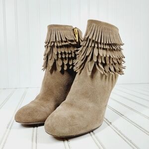 Isola Suede Layton Havana Women's Brown Alaska Suede Fringe Booties E173
