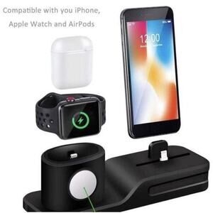 isopeen 3 in 1 Practical Multi-Function Desktop Charging Station Charging Stand Battery Charger. 3 in 1 design, charging for phone, for iwatch, and earphone storage.