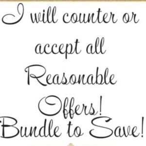 Bundle and save!!! Purchase multiple items from this store by hitting the … in the upper right corner when using cell phone. Then at the bottomof ghe page and select add to bundle. Continue this process until all items are in the bundle. Select offer and your price. Your offer will be accepted or counter offered. This will save in all items and shipping.