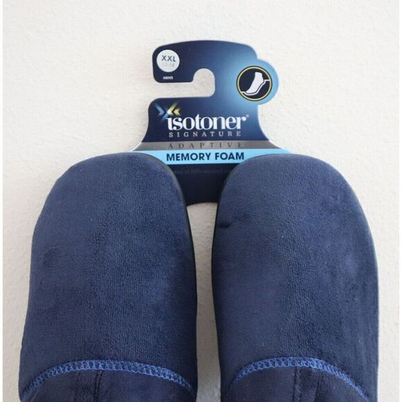 Isotoner A92509 Men Sz 2XL (13-14) Navy Blue Jared Memory Foam Moc Slippers