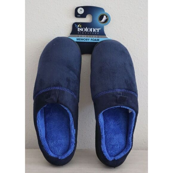 Isotoner A92509 Men's Sz M (8-9) Navy Blue Jared Memory Foam Moc Slippers