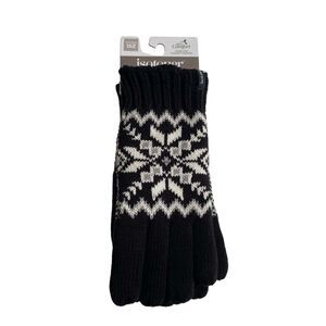 Isotoner Adult Snowflake Knit Gloves One Size Black NEW NWT