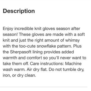 Isotoner Adult Snowflake Knit Gloves One Size NEW
