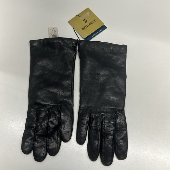Isotoner Aris 115 Leather Gloves Cashmere Lined Winter Luxury Black New One Size