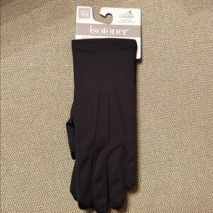 Isotoner Aris Driving Gloves Brown Black Leather Trim Nylon Stretch Winter Sz XL