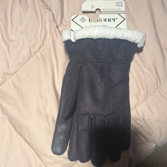 Isotoner Black Gloves with White Sherpa Cuff