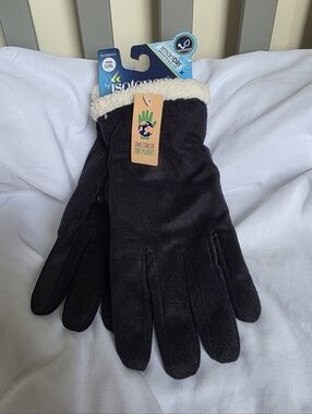 One size fits most. Black. Knit material with fleece liner. Bundle to save on shipping!
