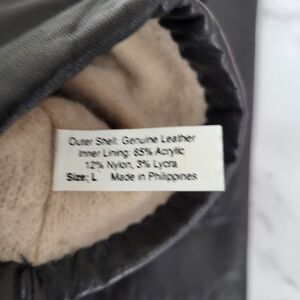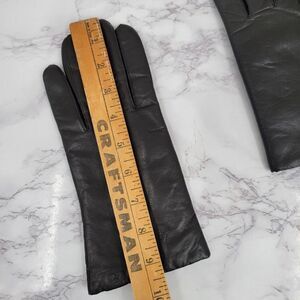 Elegant black leather gloves featuring a soft knit lining. Perfect for adding a touch of sophistication to any outfit.