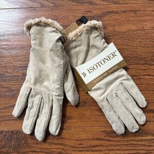 Isotoner Brown Mittens with White Trim