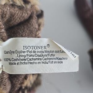 Isotoner Cashmere Lined Brown Leather Gloves with Faux Fur Cuff