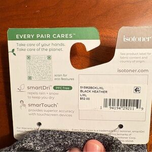 Isotoner Comforter Smart Dri Smart Touch Black Heathered Gloves NWT L/XL