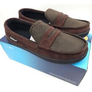 Isotoner Faux Suede Memory Foam Moccasin Slippers Dark Chocolate 8-9 Medium NEW