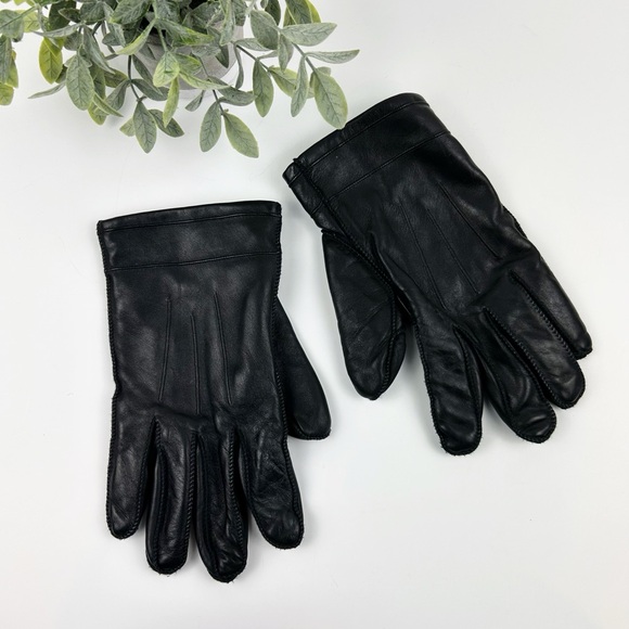 Isotoner Genuine Leather Gloves Black Women's Size Large