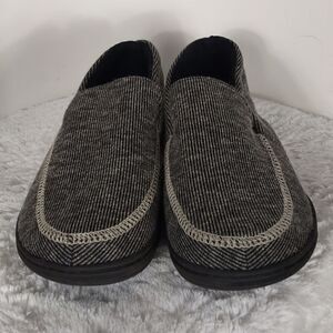 These Isotoner gray closed back slip-on slippers are a size 8-9. They have a super cushioned insoles for comfort and rubber soles. Pre-owned and in like new condition. All offers welcome.