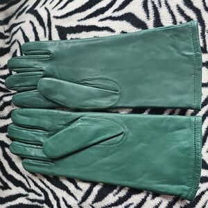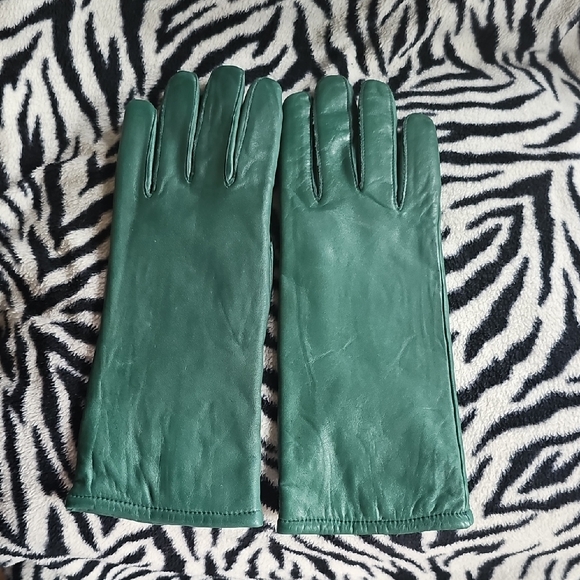 Pine green lamb leather ladies gloves. New without tags. Beautiful, classy fashion statement that keeps you warm too! Lined with acrylic.