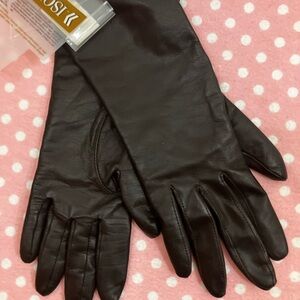 Sleek dark leather gloves by Isotoner. Ideal for a chic appearance.
