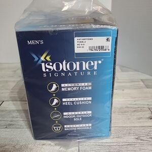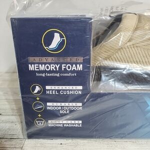 Isotoner Mens M 8-9 Corduroy Hoodback Slippers Pebble Memory Foam Inside Outdoor