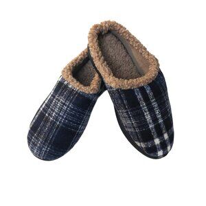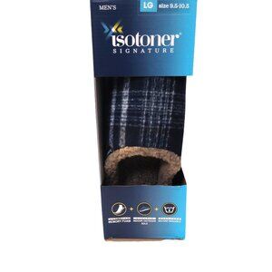 Isotoner Signature Men's Blue Plaid Memory Foam Indoor/Outdoor Slippers Size Large 9.5-10.5