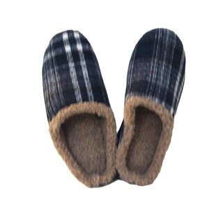 Isotoner Signature Men's Blue Plaid Memory Foam Indoor/Outdoor Slippers Sz 11