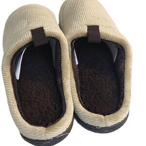 Isotoner Signature Men's Memory Foam Indoor/Outdoor Corduroy Slippers Pebble/Tan Size Large 10.5