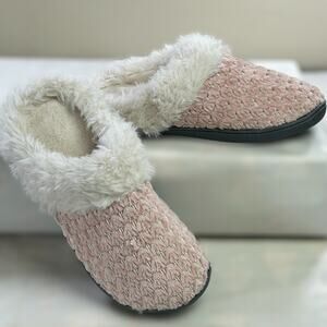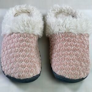 Isotoner Slippers Women Size 7.5 Pink White Popcorn Chenille Faux Fur Slip Ons