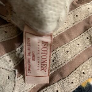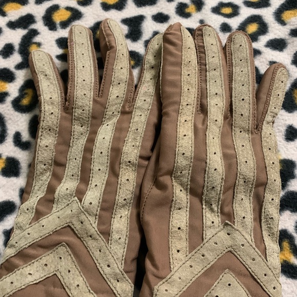 Stylish Isotoner gloves with a tan and cream design. Perfect for adding elegance to any outfit.