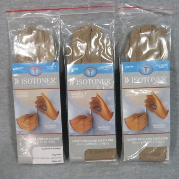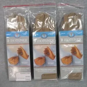 Lot of 3 NEW Isotoner Therapeutic Gloves Large Camel Seamless Support Eases Pain and Swelling from Arthritis and Injury
